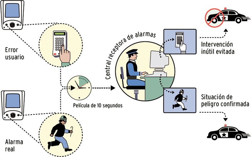 - En caso de salto de alarma, la central receptora de alarmas identificará si se trata de una incidencia real y, encaso de tratarse de una, contactará inmediatamente con las Fuerzas y Cuerpos de Seguridad del Estado llegando al lugar de los hechos garantizando de este modo la mejor cobertura ante intrusos.